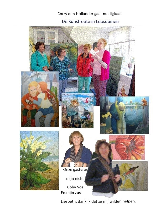 Hier een klein overzicht van het werk van Corrie van Tiel de Kraa.Ik heb veel gedaan, en altijd weer even weer iets anders. Ik ben gestart met pottenbakken,tassen en sieraden maken. En verder maakte ik kleding en knutselde ik veel. *** Op dit moment heb ik me laten inspireren om wandelende mensen te schilderen met waterverf. Ze zijn een beetje abstract, en van mij af lopend. Tot nu toe zette ik ze op Facebook en Instagram met een passend liedje erbij. Gewoon voor mijn eigen plezier. Ik heb van de week voor het eerst iets verkocht, wat voor mij niet het belangrijkste is, maar toch leuk. *** Verder heb ik ook veel uitgeprint op fotopapier en heb daar nu dubbele kaarten van. Een paar schilderstukken met acrylverf gemaakt, ook heel leuk. Ook droogbloemetjes heb ik ingelijst. Ik hoop dat mensen kunnen genieten van de vrolijke poppetjes.